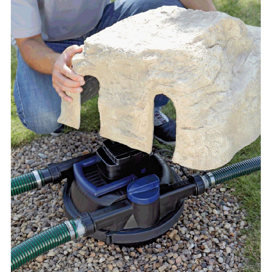 Du vrider ett vred på filtret till läge rengöring. Dammpumpen pumpar då vattnet baklänges genom filtermaterialet samtidigt drar du i ett handtag upp och ner. Filtermaterialet i filtret “kramas” då samman och smutsen spolas ur genom den särskilda avloppsutgången. Sätt fast en slang på avloppet så får du ett idealiskt vatten till dina rabatter. När vattnet klarnar är det bara att sätta vredet i normalläge igen.