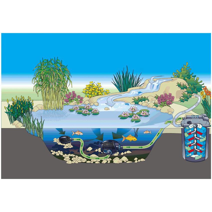 | Kapacitet vattenrening lite fisk (max 50 cm fisk på 1000 liter vatten, inga koi) (m³) | 1.5 |