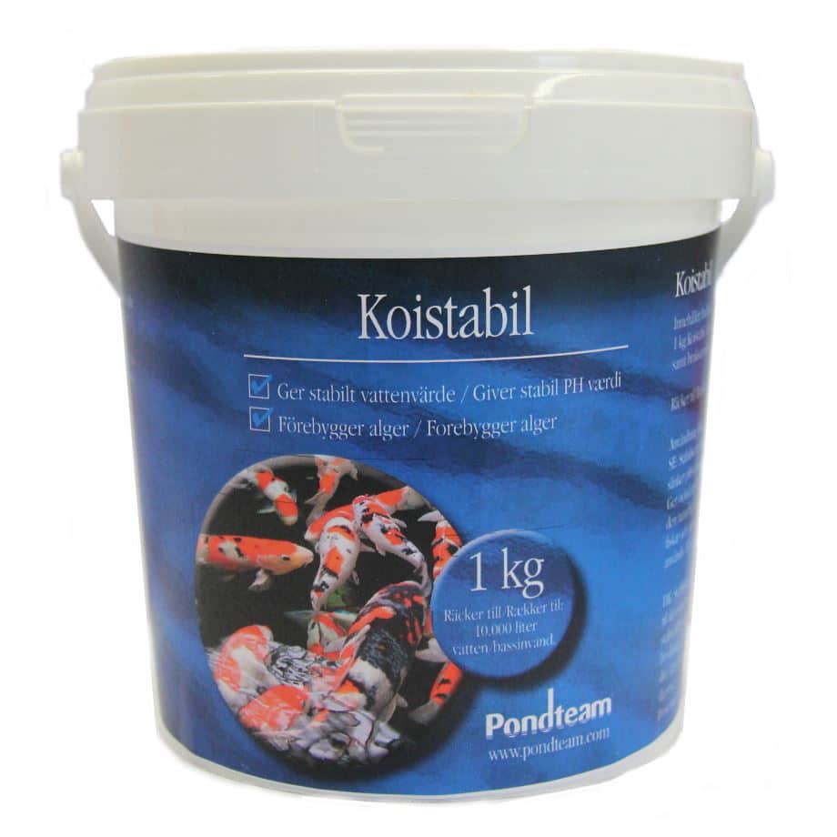 Koi stabil tillför vattnet tillräckligt med kalcium och koldioxid för att din damm skall få ett stabilt pH värde mellan ca 7,5-8,3. Koi stabil förhindrar variationer i pH-värdet genom att buffertverkan ökar. Ett pH högre än 8.6 eller stora variationer i pH värdet framkallar stress hos fiskar.