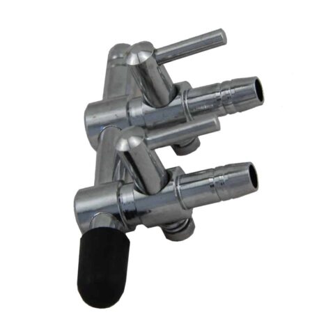 Smidig luftfördelare för 4 mm slang med 2 utgångar med kran, den andra man man sen koppla vidare till en annan fördelar.