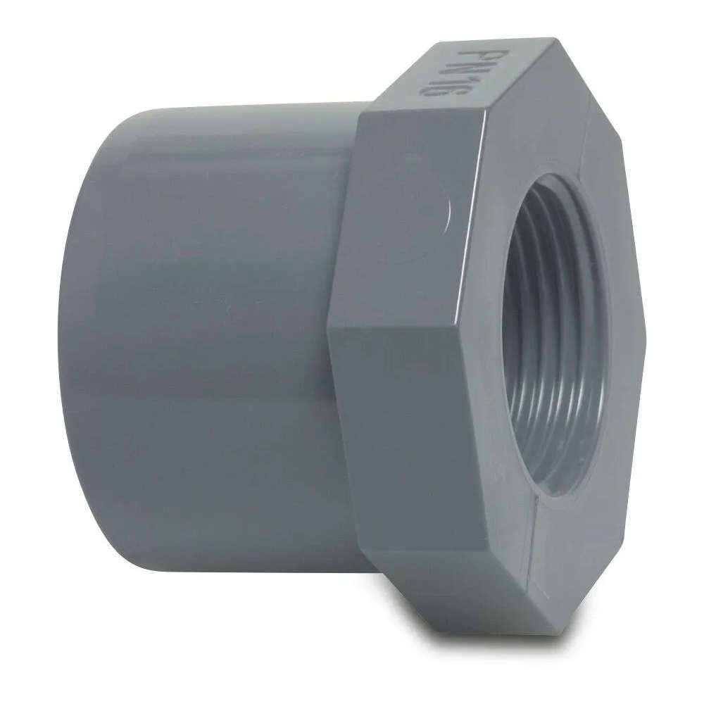 Övergång mellan 40 mm rör och ¾” invändig gänga. Rördelen limmas med PVC-lim.