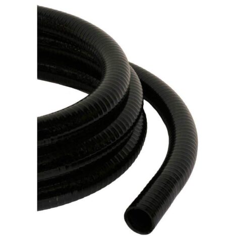 Slangen är armerad och får inga veck när du böjer den. Tänk på att använda så grov slang som möjligt till vattenfall/filter för att få så minimala förluster som möjligt på trycket.